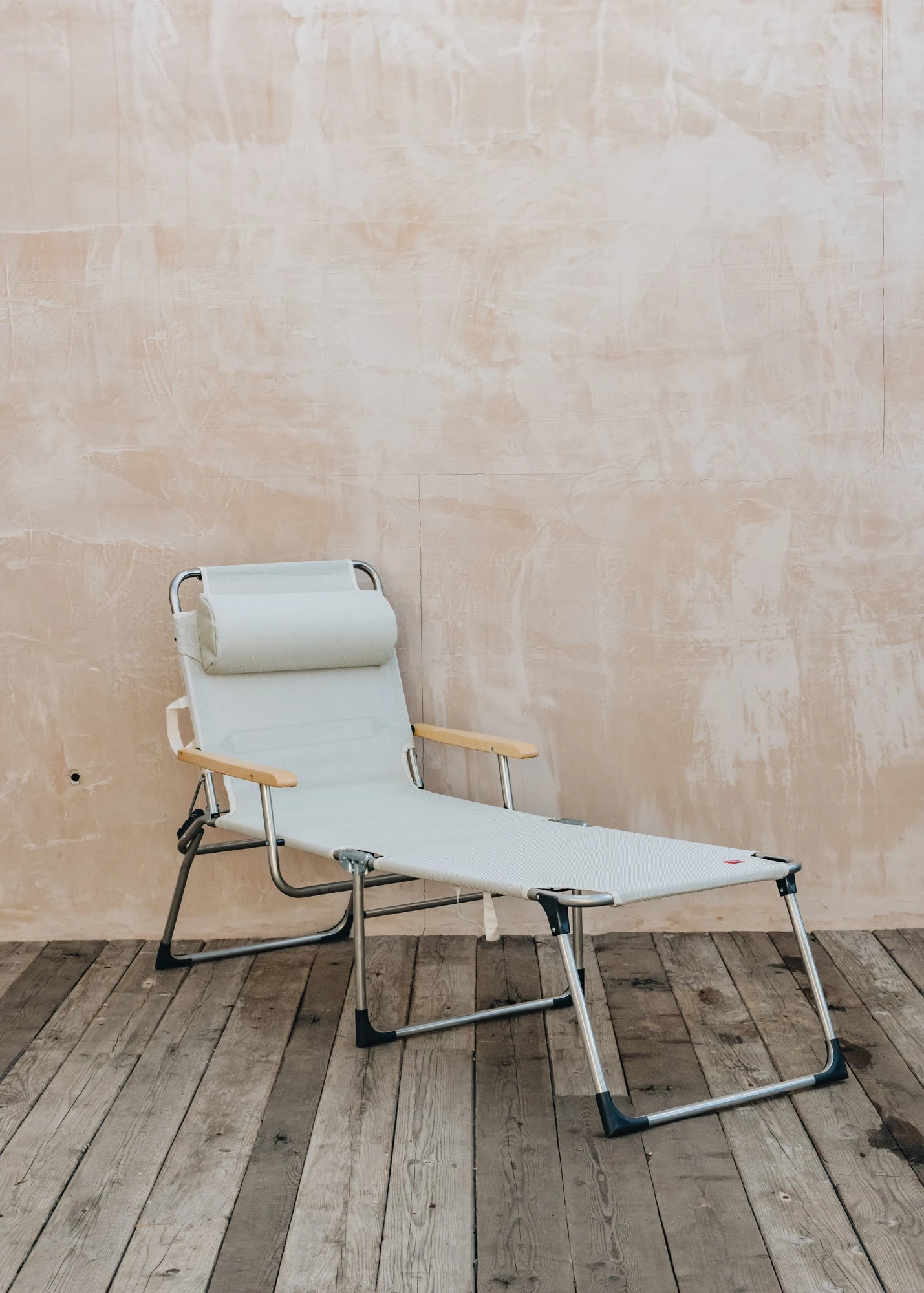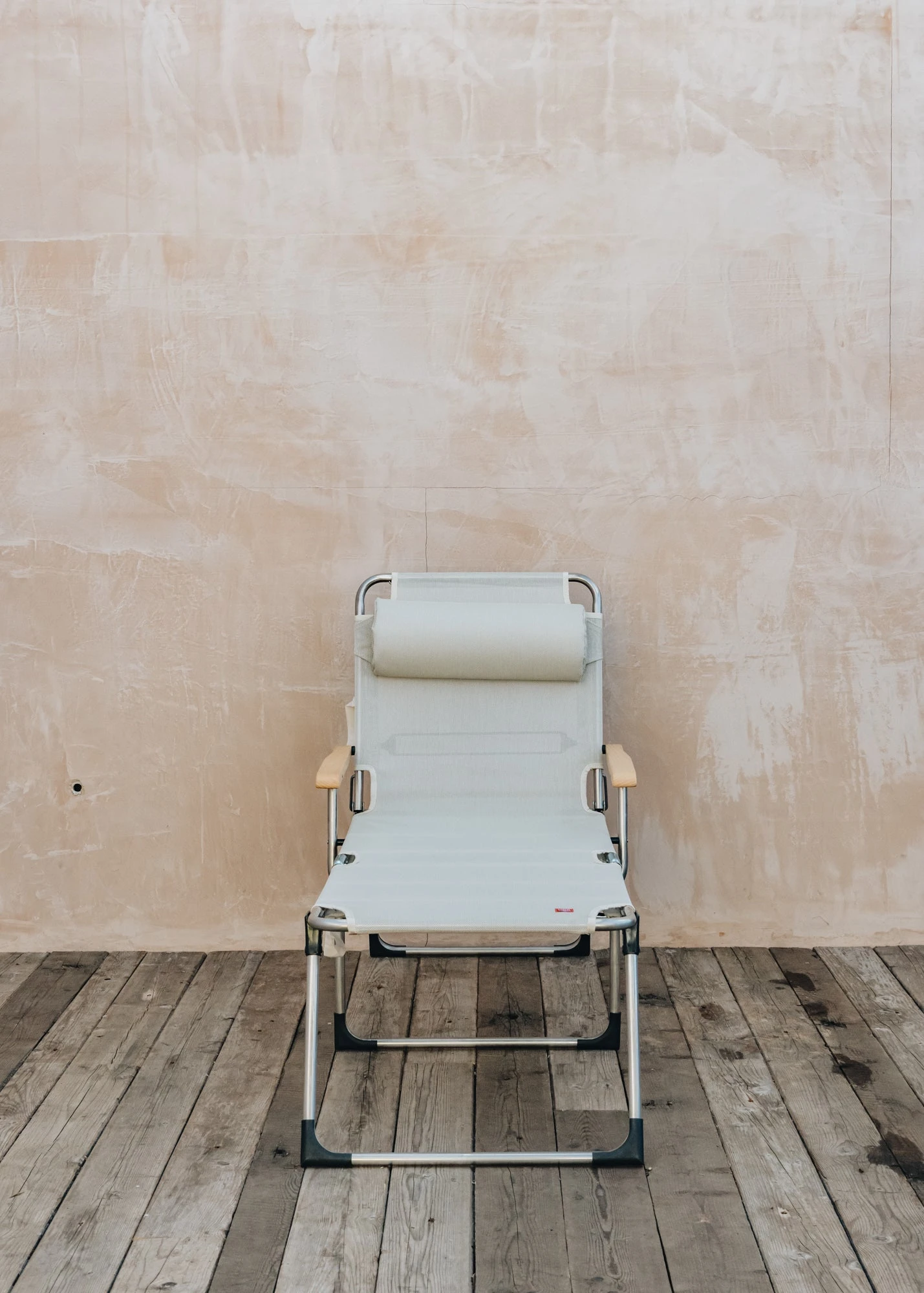 The Amigo folding sun lounger chair is designed with attention to quality. The shiny aluminium tubular frame supports a weatherproof mesh fabric and light-coloured hardwood arms incorporate a multiple position lock. Simply adjust the angle of the back to one of four positions, then lie back and soak up the sun.