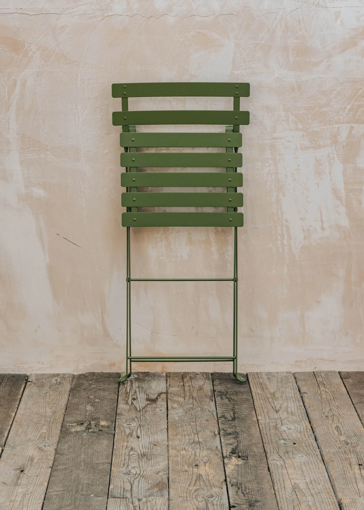 Practical and elegant, the iconic Bistro Folding Chair is a timeless symbol of French café fronts. With a design dating as far back as 1889, this foldable chair is crafted from 7 steel slats, and is particularly lightweight and easy to transport for storage between uses.