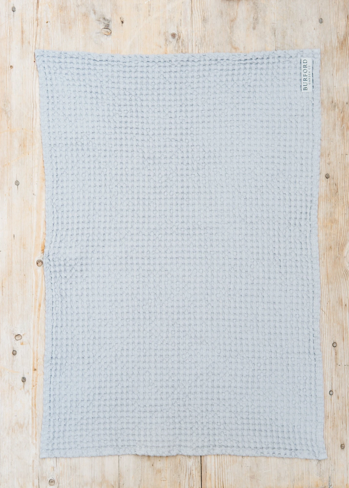 This light grey towel is made from a waffle weave linen/cotton mix giving it an appealing texture yet retaining its softness. Linen and cotton are both highly absorbent and dry quickly. With a small hanging loop inside, use the towel to dry hands after washing.