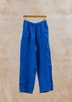 These royal blue, easy-fit linen trousers are an ideal wardrobe addition, perfect for popping on in warmer weather. The elasticated waist ensures a comfortable fit, while the long, straight legs and seam detailing add a stylish touch. Lightweight and airy, the soft linen fabric is gentle on the skin, a considered choice for travelling or every day.