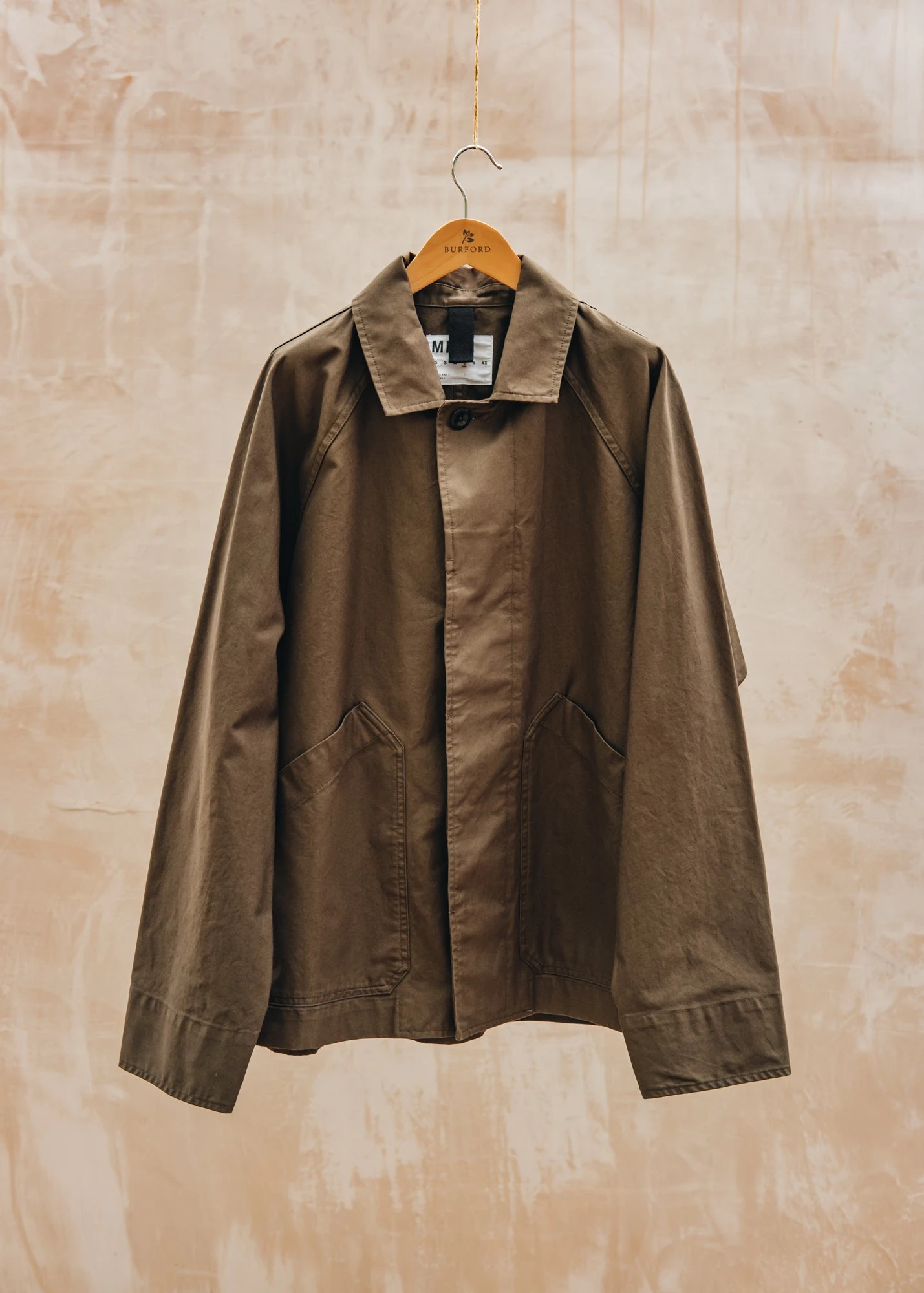 Boasting a relaxed cut, the MHL. Raglan jacket is fabricated in a compact cotton plain weave with a dry hand feel. Informed by a vintage factory jacket, it is constructed with a button fastening front, slant patch pockets, split panel detailing on the back yoke, and inside patch pockets.