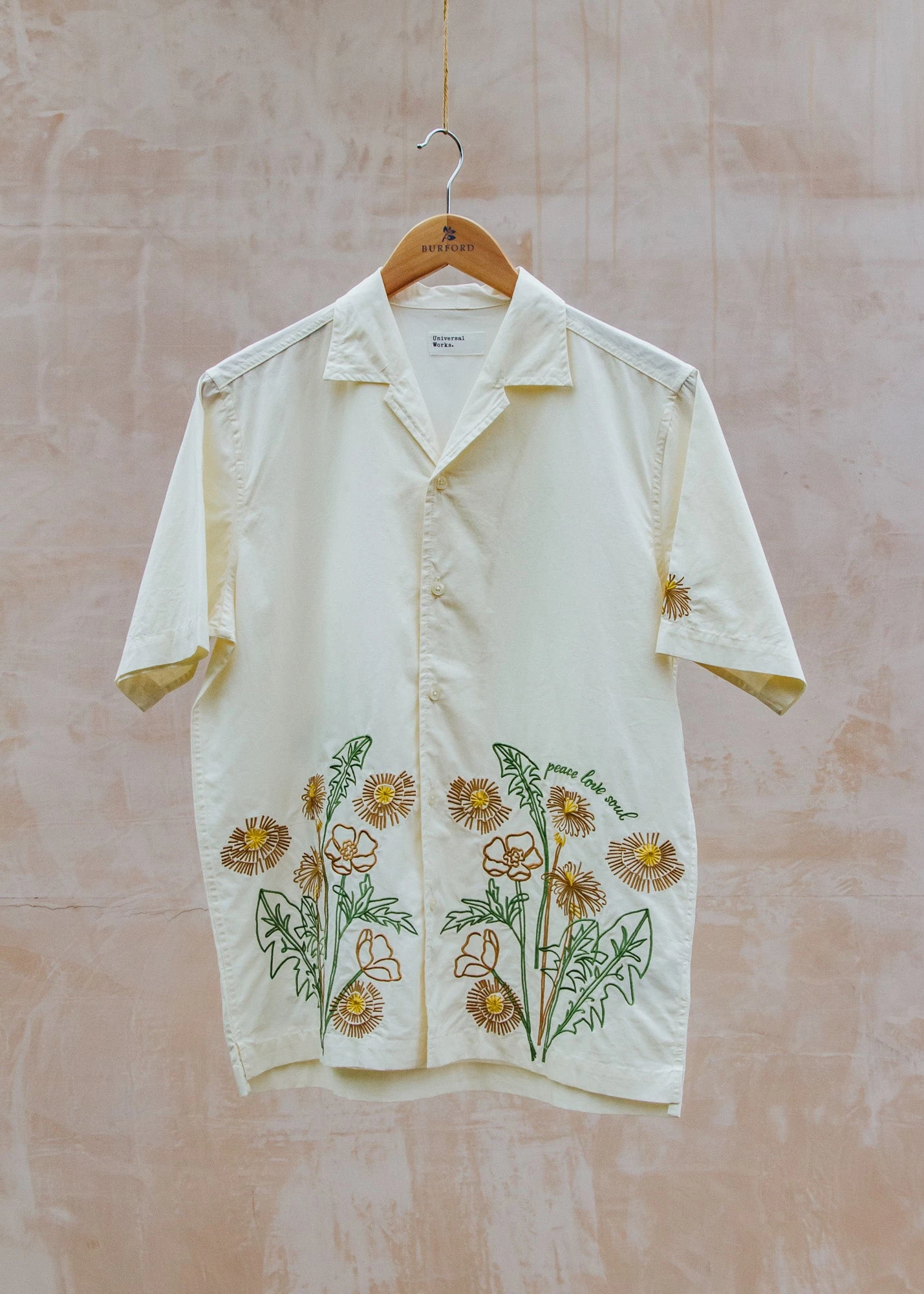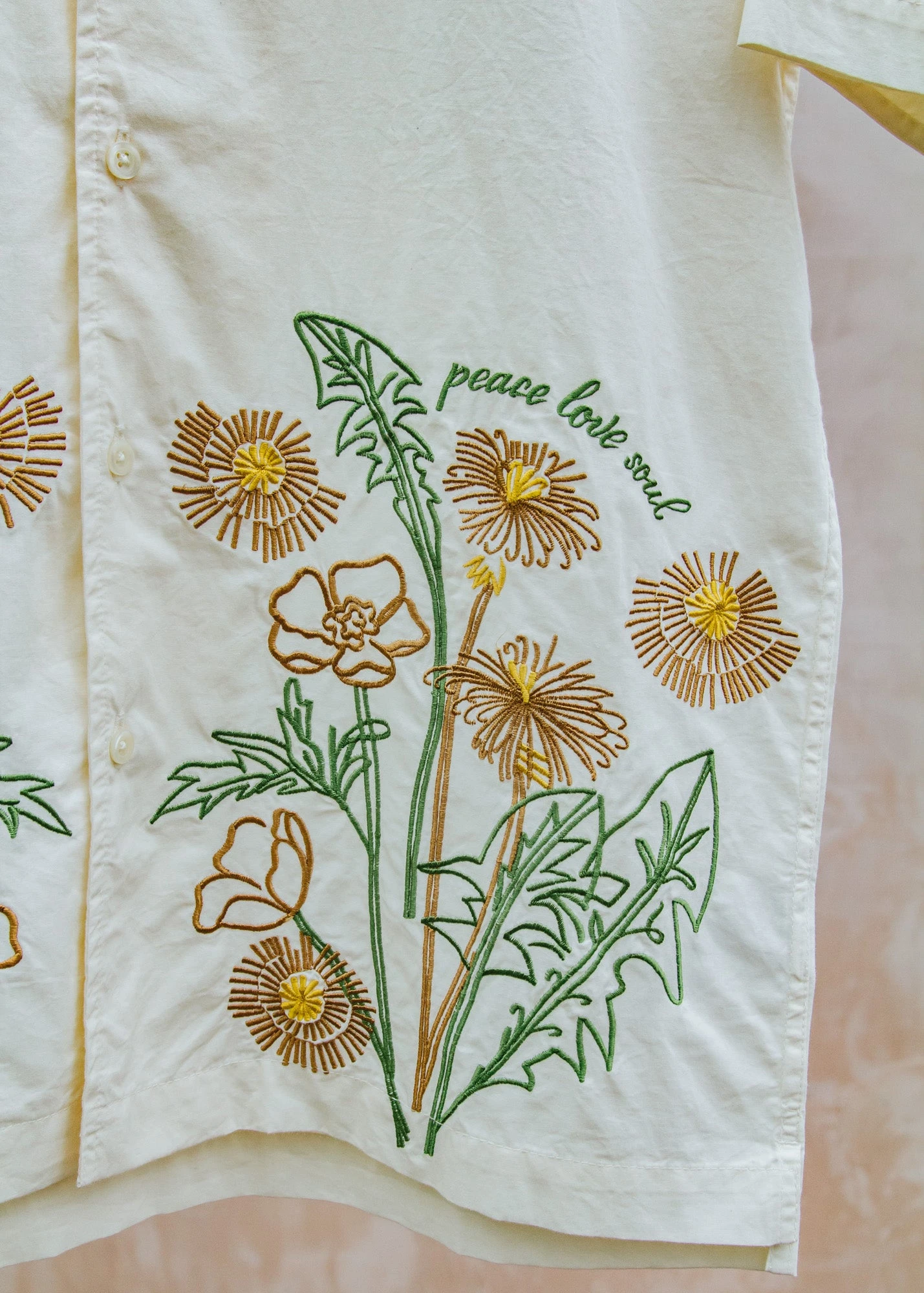 Sporting distinctive hand embroidery along the hem front and rear, the light cotton shirt, Minari, adds a taste of summer to the wardrobe. The short-sleeved shirt has a relaxed fit, with open neck and button enclosure, perfect for chilling with friends or in a casual office setting. The ecru colouring adds to this feeling of summer freedom, pairing easily with the rest of the wardrobe.