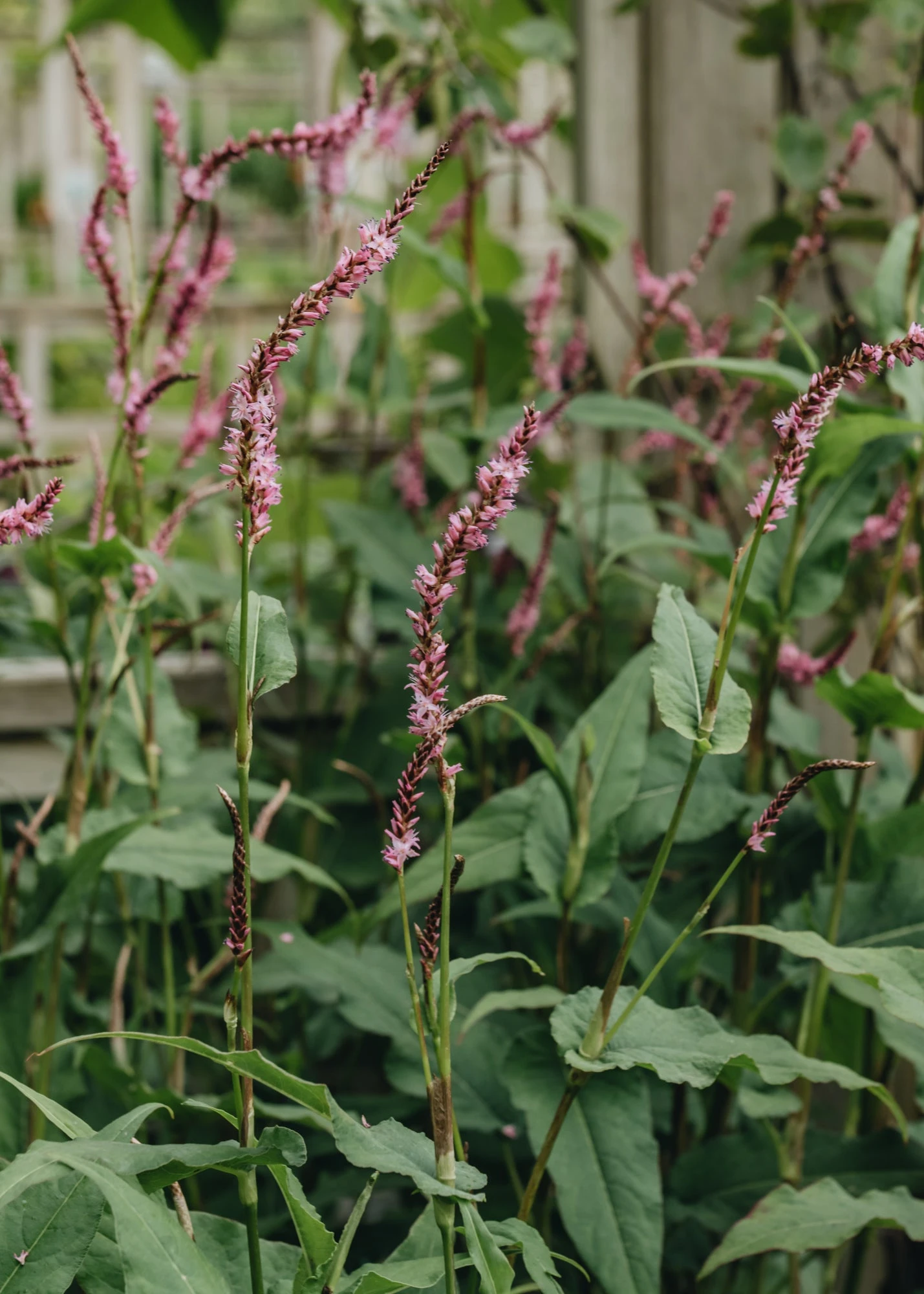 Persicaria Pink Elephant (also known as Bistorta) is a clump forming perennial, named after its flower stems, that bend like a trunk! The pink, bell shaped flowers are held on these long, thin spikes, adding vertical interest to the garden, and flowering over a long period of time.