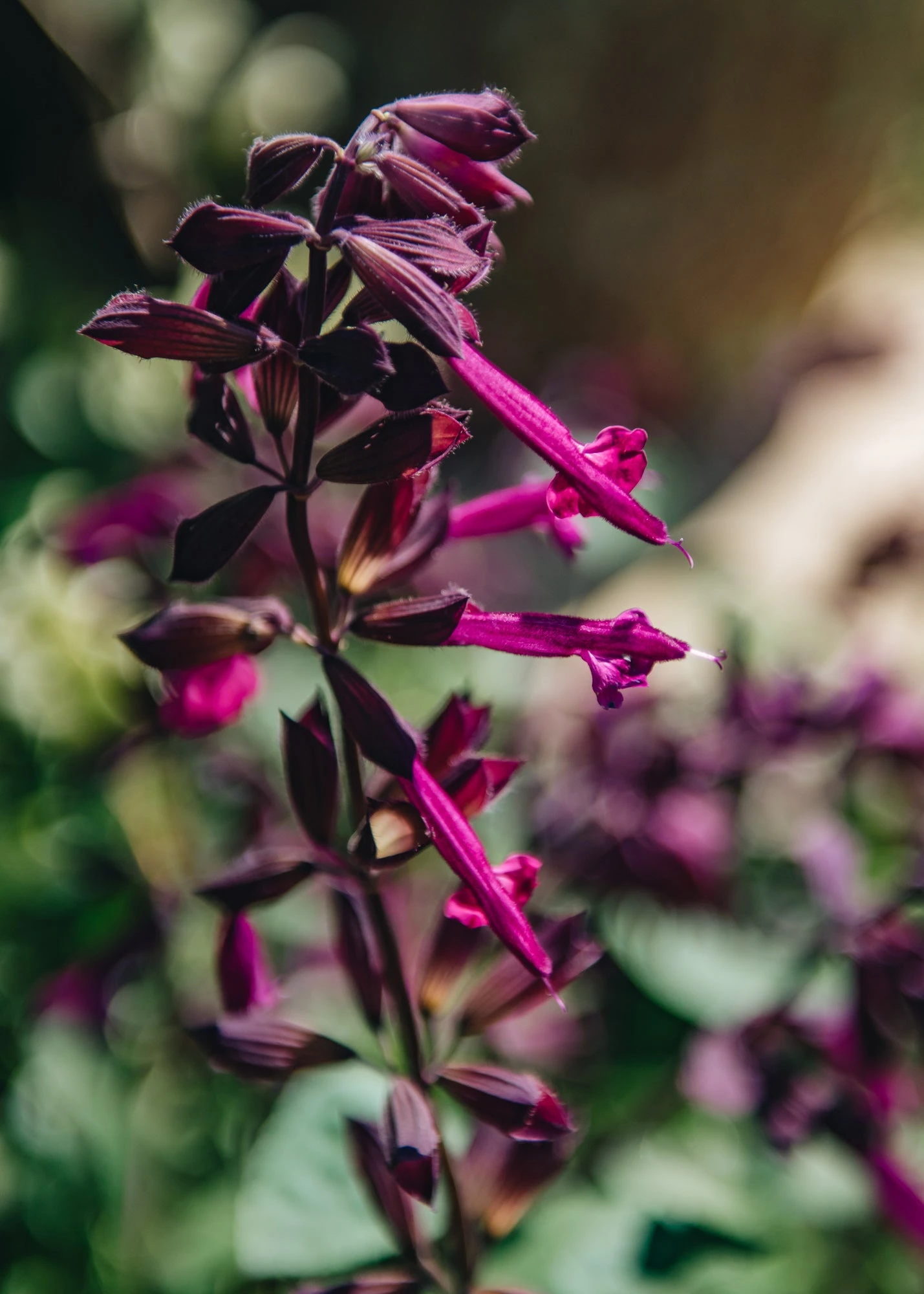 Desired for its long blooming season, Salvia Love and Wishes is a tall, elegant perennial featuring showy spikes of reddish-purple flowers, soaring above a bushy clump of mid-green aromatic foliage. The flowers rise along dark stems and are attractive to butterflies as well as being excellent for cutting due to their luscious fragrance.