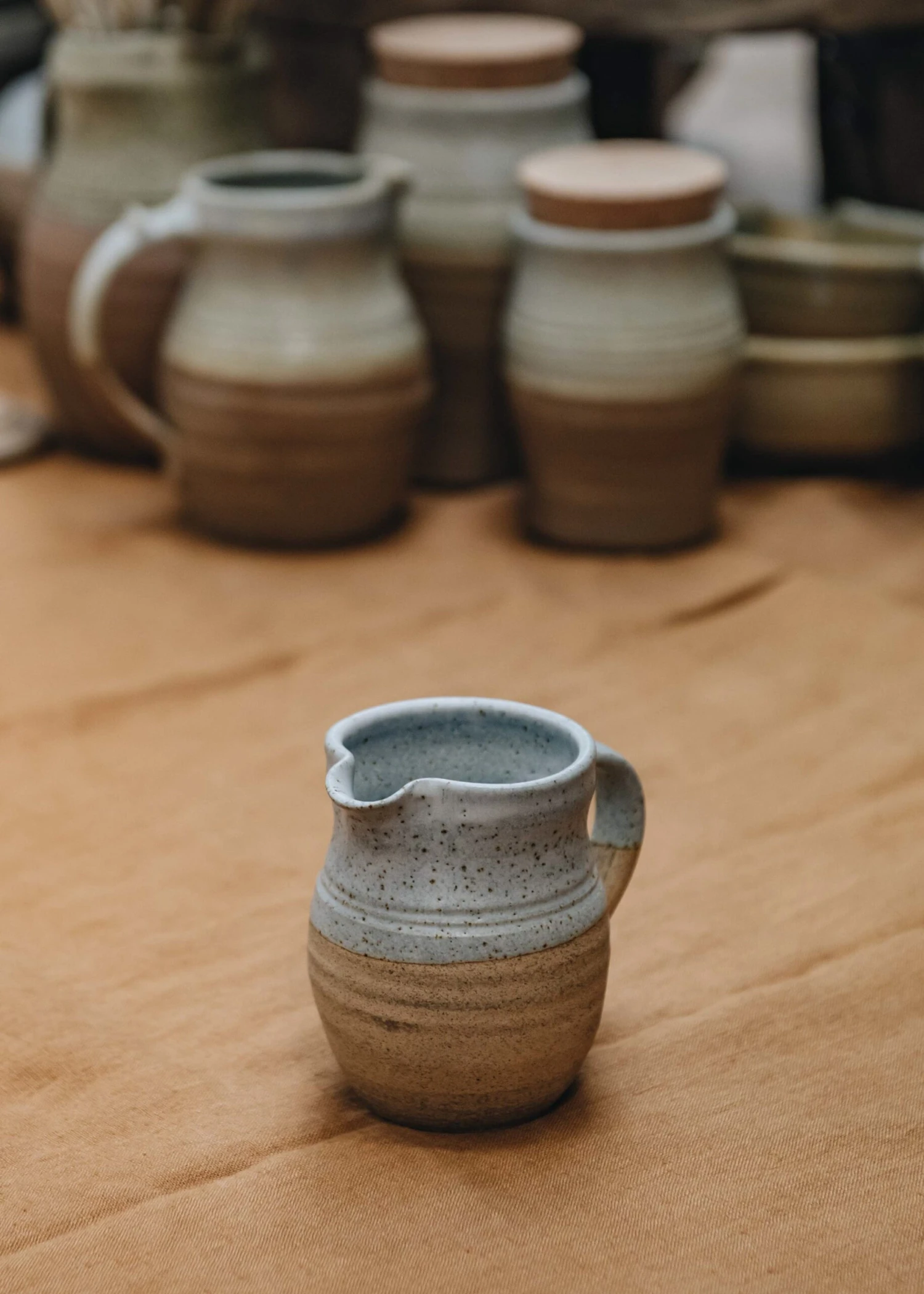 Not only decorative, the thick, earthy construction of these Jugs ensures piping hot gravy stays hot and chilled milk remains cold. The dappled colouring comes from the high iron content within the clay, encouraging a speckled patina. Fired at 1300°C, this process enhances the variegation and generates a luscious glaze.
