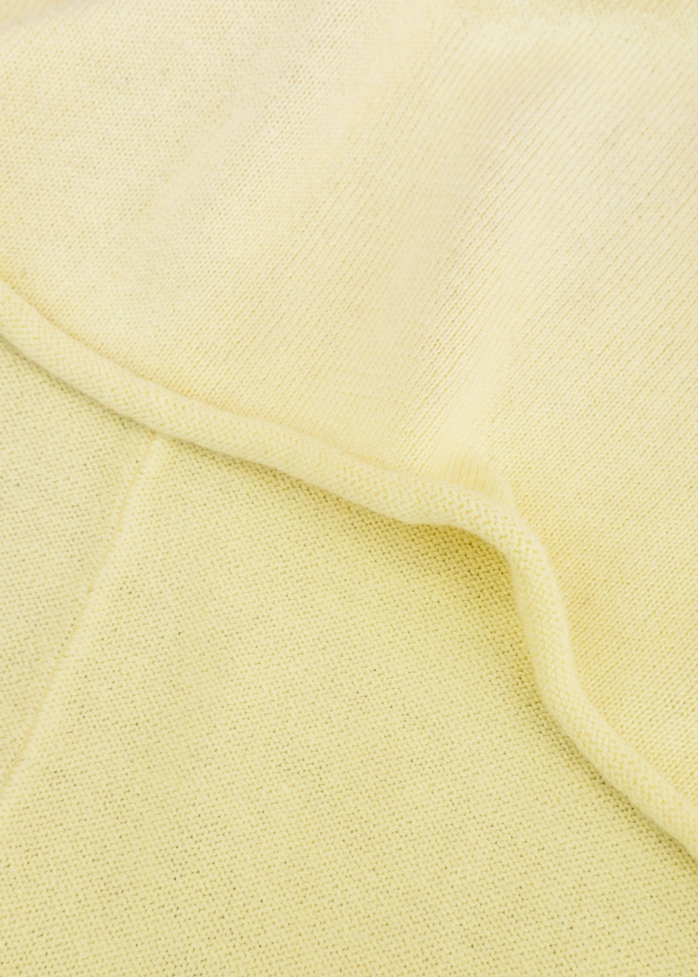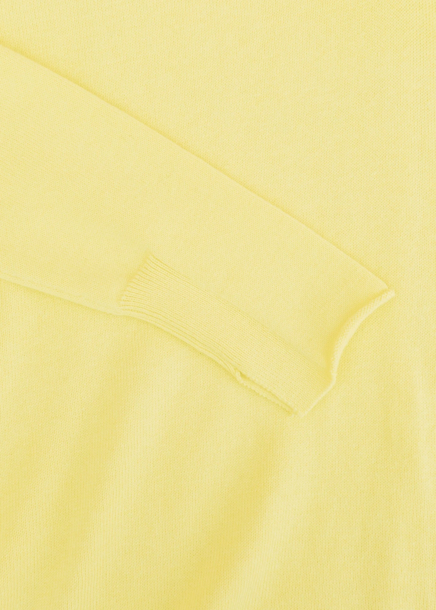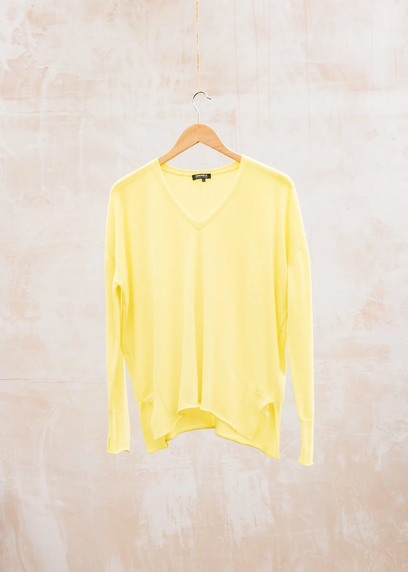 In a joyful yellow tone, this oversized jumper is loose, comfortable and ideal for layering in cooler weather. Made from a blend of cotton and cashmere, this v-neck jumper is wondrously soft and light, with the natural fibres bestowing warmth without bulk.