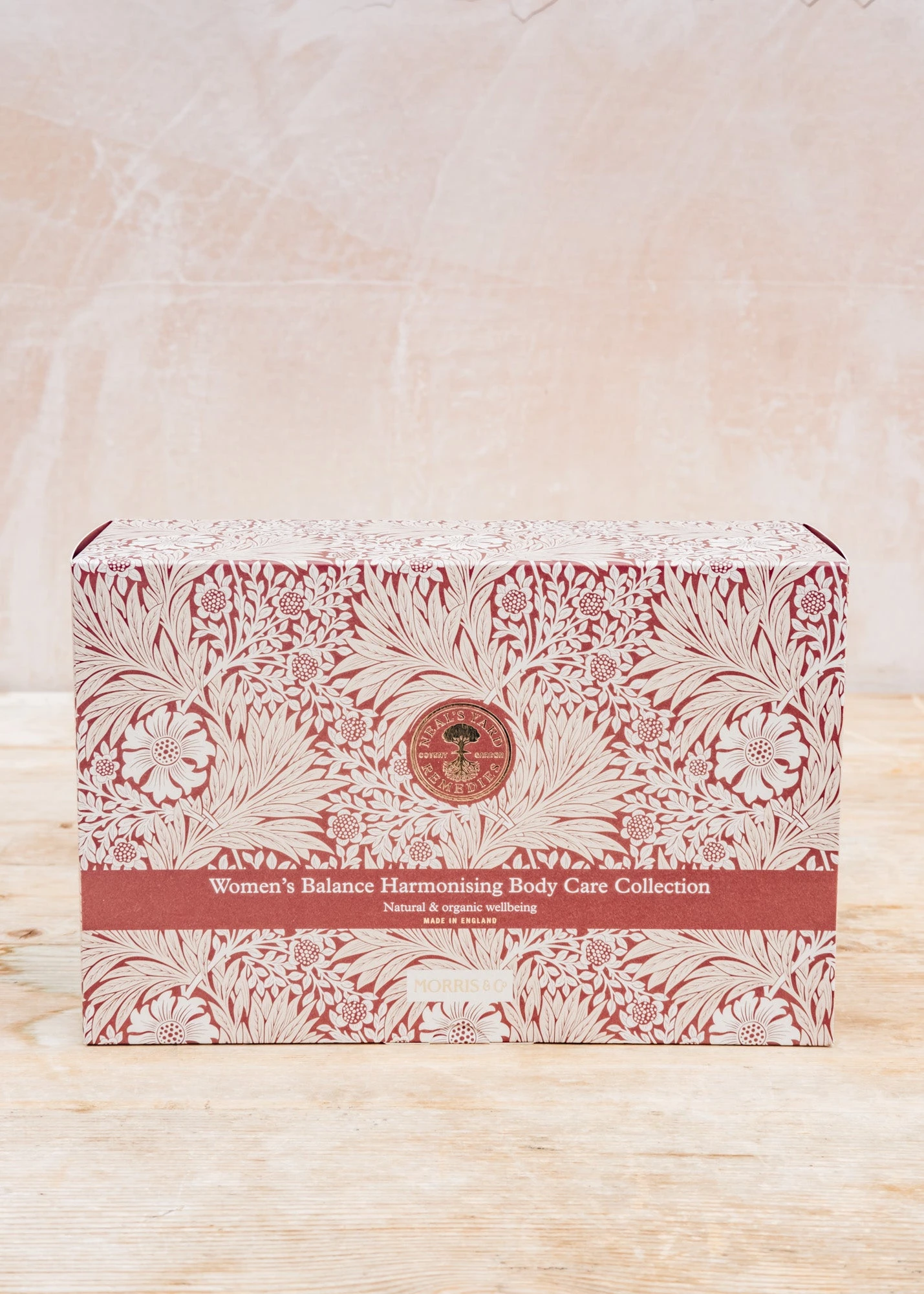 A restorative collection of bath and body care, formulated with essential oils to balance body and mind, contributing a feeling of harmony to the body’s natural cycles and rhythms. Presented in a limited edition gift box featuring Morris & Co.’s Marigold print, the collection includes Women’s Balance Foaming Bath, Massage Oil, Body Cream and Remedies to Roll.